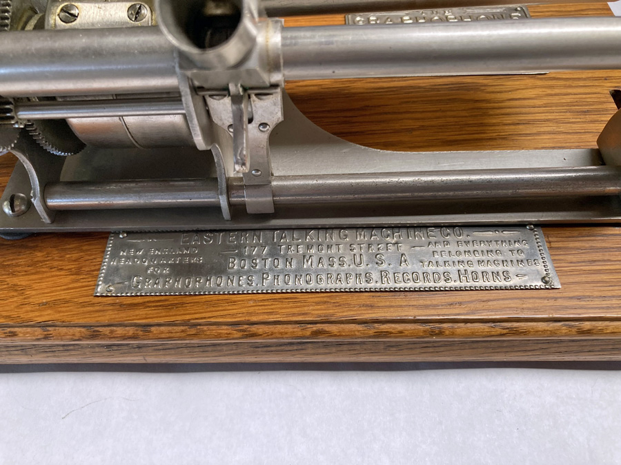 Although Columbia Eagles are readily found, and still fairly inexpensive, it is very challenging to find one in mint original condition. These were typically not well cared for once they became obsolete in the early 20th century, and most that are found today suffer from years of neglect. This early example is nearly new in condition and is amazing to see. (The all-wood handle, without metal end caps, dates this machine to between September 1897 and November 1898.) This machine also includes a recorder in original box, which added another $5 to the total, bringing this specific Graphophone up to $17, which is equivalent to almost $450 in today's dollars.