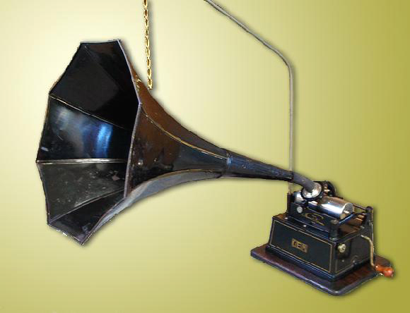 The modest little Gem was the bargain phonograph in the Edison line, selling for $7.50 in 1899, raised to $10 shortly thereafter. The Model B was released in 1905, still priced at $10 when fitted with a small horn but for another $2.50 customers could have this larger paneled horn. Compared to the slightly more expensive Standard and Home phonographs the Gem was still a noisy and underpowered machine, but nonetheless it was a reliable and sturdy machine which used the same reproducer as larger phonographs and consequently plays with excellent clarity. Althought it is a very common model, this Gem is a favorite of mine since I have owned it since 1962; it appeared in the 1963 newspaper article on my home page.