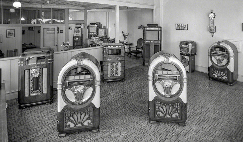 This shows the H.R. Maser Music Co. showroom in San Francisco in the 1940s. Given that my Wurlitzer 750 came from San Francisco I'd like to believe it was originally sold here, but of course there is no way to know.